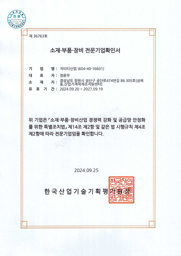 • 소재 부품 장비 전문기업확ì¸ì„œ